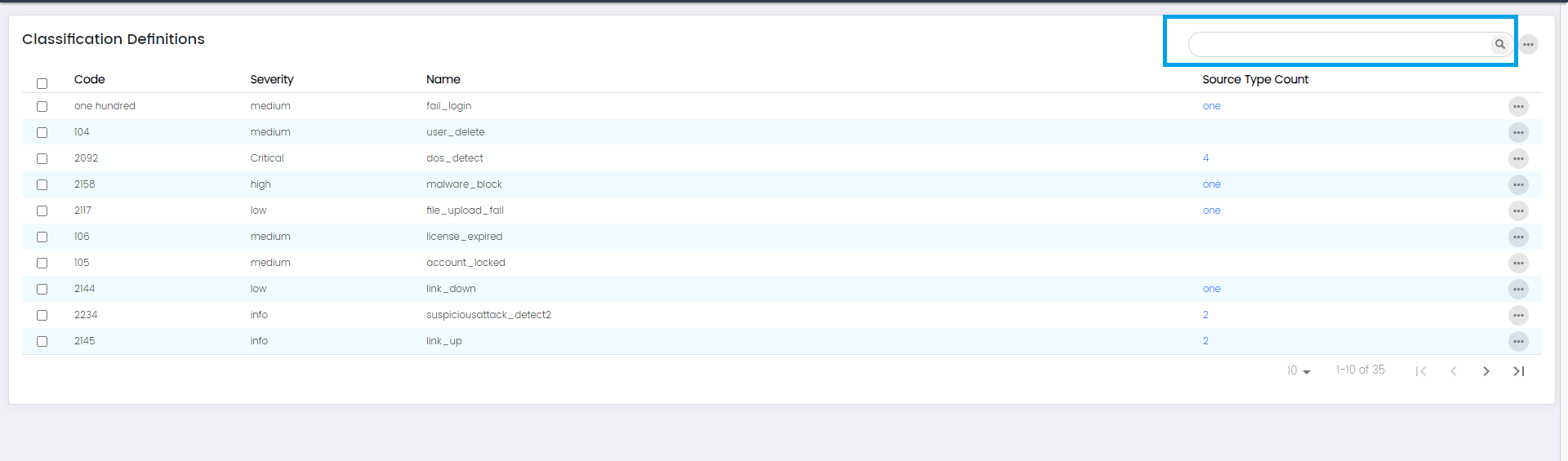 The "Search" option provides a search functionality that enables you to quickly locate specific classification definitions based on keywords or criteria. This feature is particularly useful when you have many classifications and need to find a particular one efficiently.